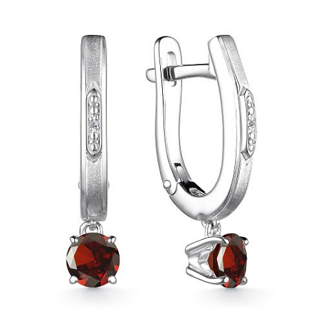 Лаконичные удлиненные серьги классического дизайна, выполнены в серебре 925 пробы с гранатами и бриллиантами