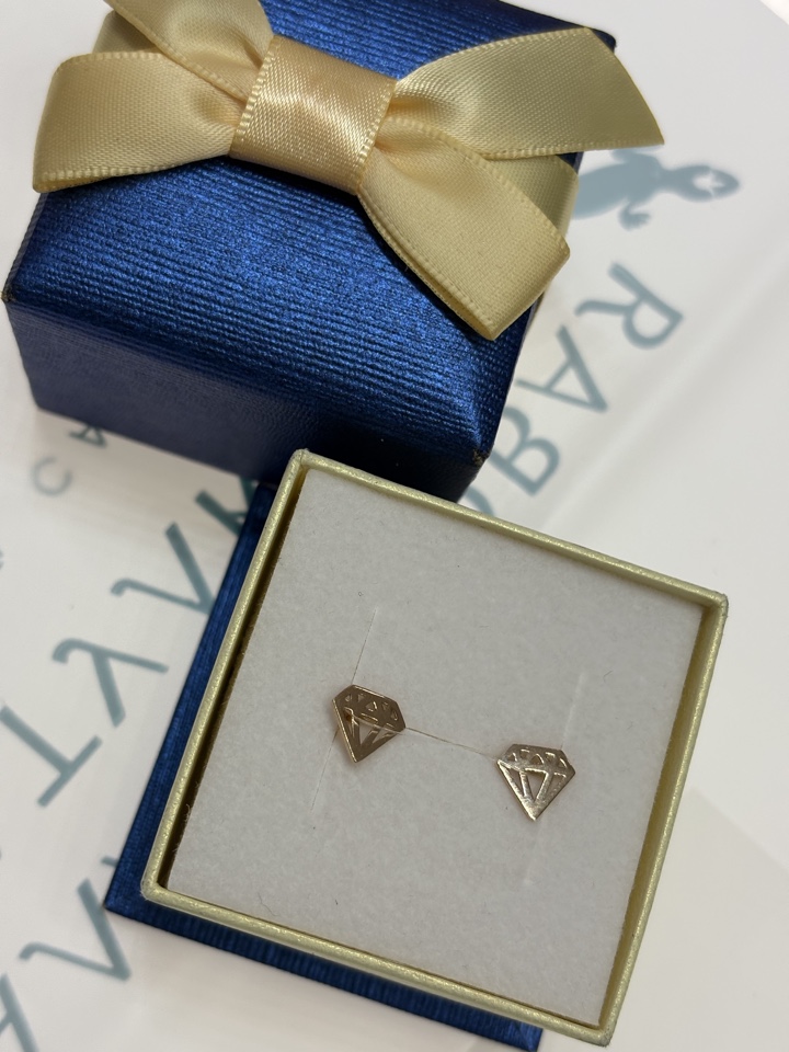 Стильные серьги - пусеты с оригинальной формой огранённого камня, выполнены из красного золота 585 пробы