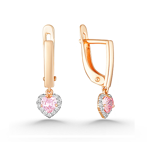Серьги выполнены из красного золота 585 пробы, с вставкой из фианитов в виде сердца, от бренда Veronika