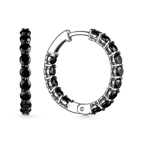 Серьги выполнены из высококачественного серебра 925 пробы, покрыты родием- металл платиновой группы, который защищает от внешних воздействий и придает искрящийся яркий блеск. Модель имеют форму колечек, украшены черными фианитами. Серьги фианитами - это прекрасный способ подчеркнуть свою женственность и добавить яркий акцент к вашему образу. Они могут стать идеальным подарком для девушек, которые ценят элегантность в украшениях. Это классическое, универсальное украшение для всех возрастов. Застежка- надежный внутренний английский замок. Бренд DEWI.