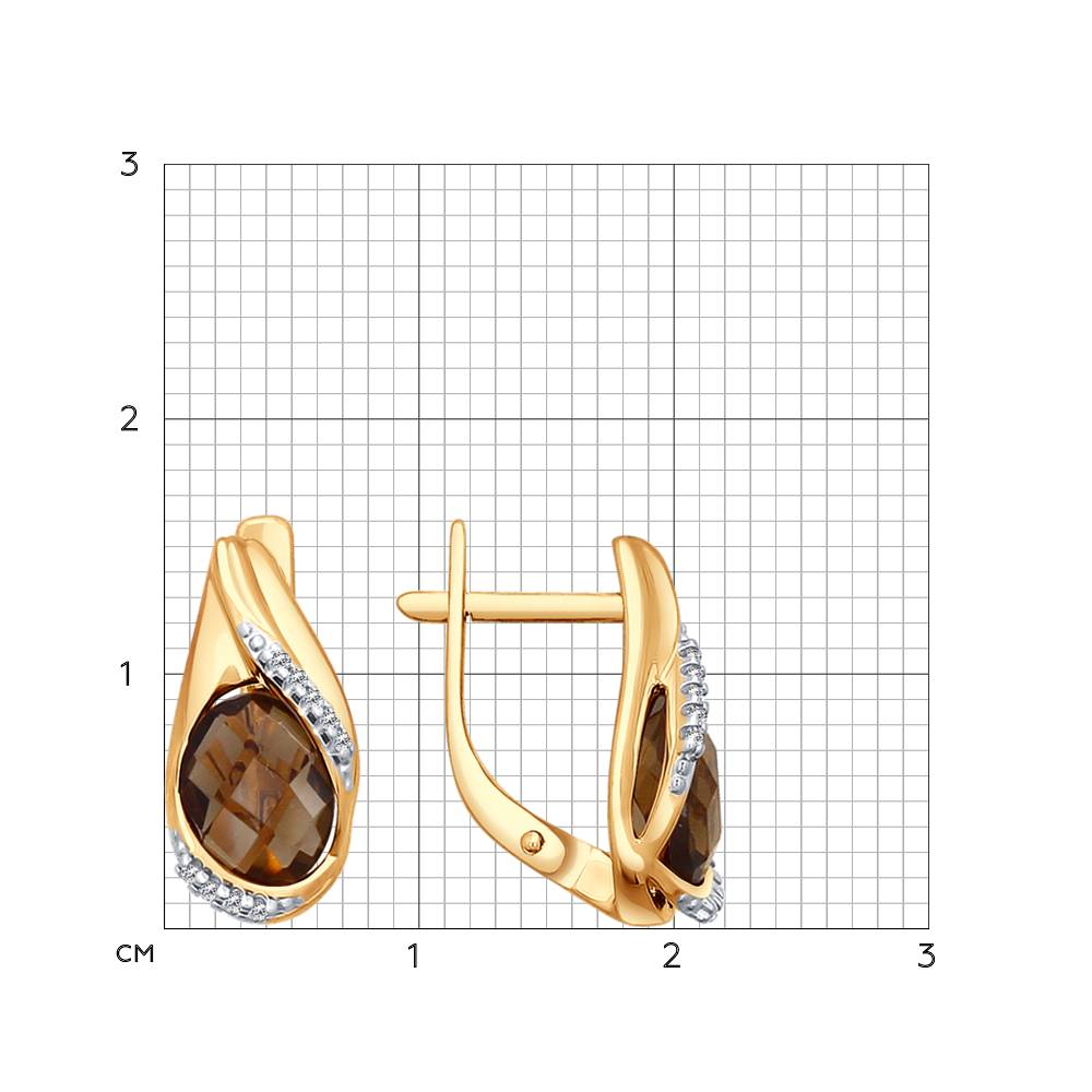 Серьги из красного и белого золота 585 пробы с раухтопазами и фианитами, от бренда SOKOLOV. Тип замка-английский, самый надежный и удобный.