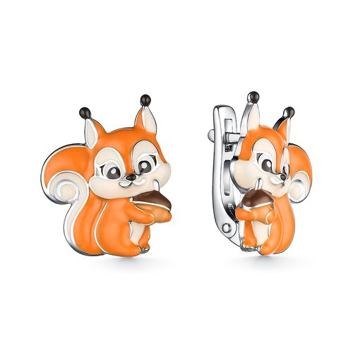 Милые детские серьги в анималистическом стиле выполнены из серебра 925 пробы, украшенные яркой оранжевой эмалью