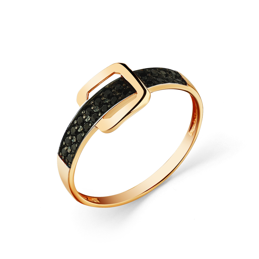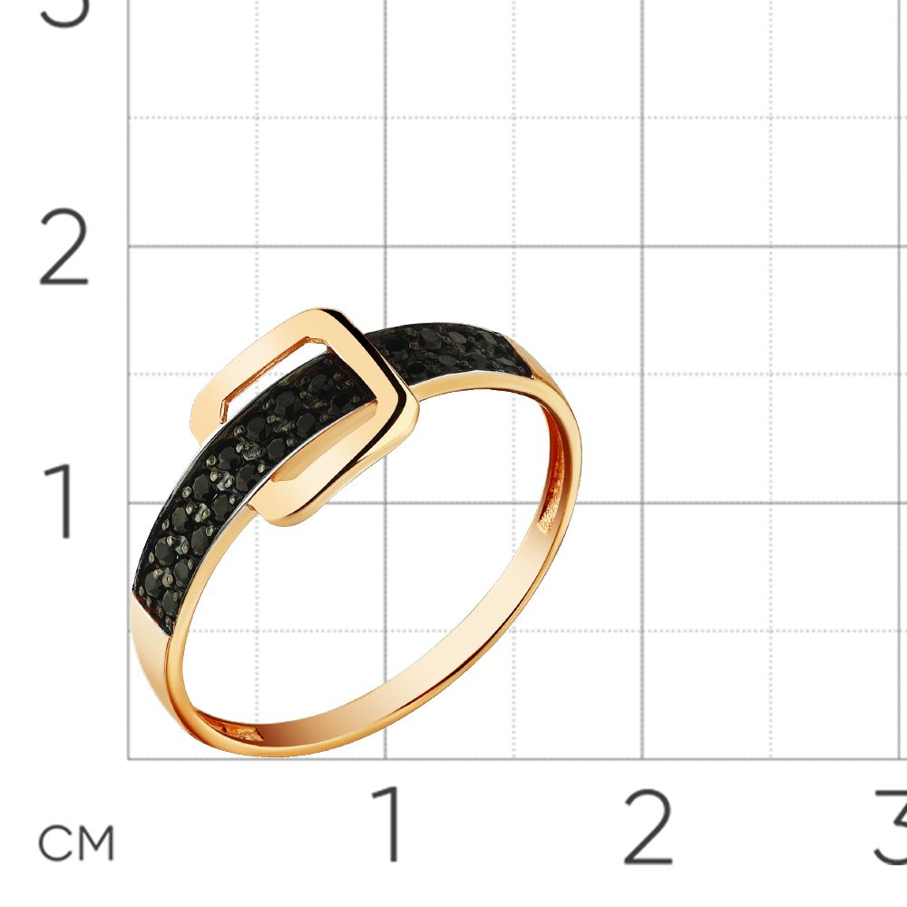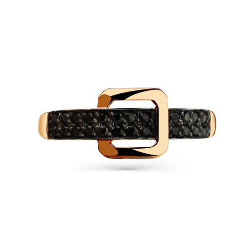Стильное кольцо, украшенное двойной дорожкой из черных фианитов, выполнено из красного золота 585 пробы