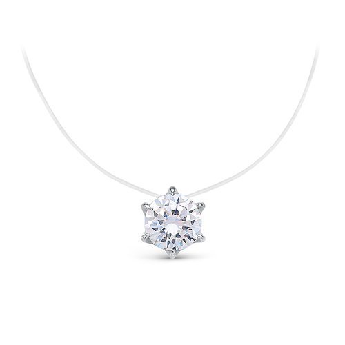 Изящное колье на леске с подвеской в виде сверкающего фианита, выполнено в серебре 925 пробы, покрыто родием