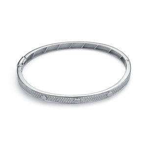 Стильный жесткий браслет в европейском стиле выполнен из серебра 925 пробы, украшенный россыпью фианитов