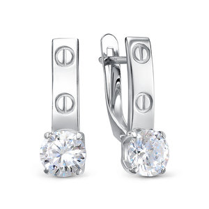 Элегантные серьги классической формы выполнены из серебра 925 пробы. Дизайн украшения – современная ювелирная классика. Изделие покрыто родием - драгоценным металлом платиновой группы, который делает серебро устойчивым к повреждениям, не вызывает аллергии, не темнеет и дарит искрящийся блеск. Тип замка - английский, самый надежный и удобный. Изделие представлено брендом "DEL`TA". Средняя характеристика камней на артикул: 2 Фианит. В комплект поставки входит: