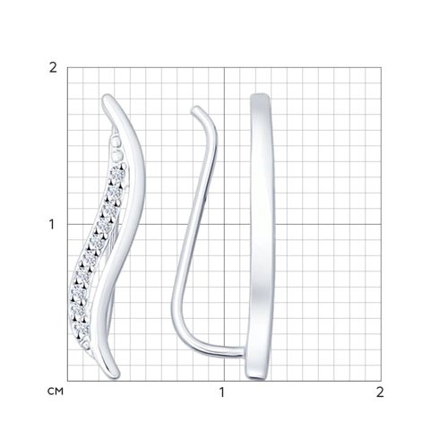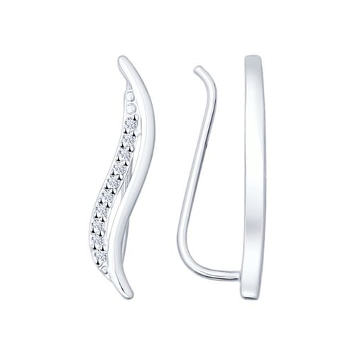 Стильные серьги украшены россыпью сияющих фианитов, выполнены из серебра 925 пробы с родиевым покрытием.