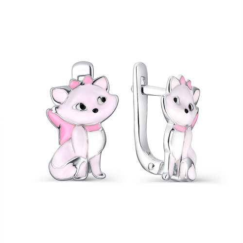 Детские серьги в образе очаровательной кошечки выполнены из серебра 925 пробы с удобным английским замком, который плотно и надежно держит серьги на ушке обладательницы и сохранит именно то положение, в котором они были закреплены. Изделие украшено ювелирной эмалью, представлено брендом "DEWI". В комплект поставки входит: