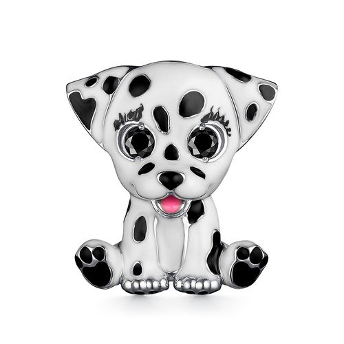 Детская брошь в виде щенка-долматинца выполнена в серебре 925 пробы и украшена яркой эмалию