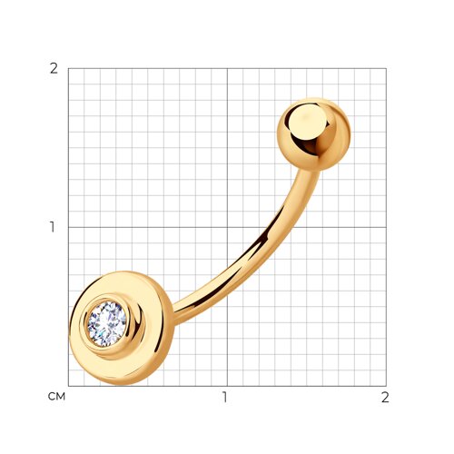 Изящный пирсинг с сверкающим фианитом выполнен из красного золота 585 пробы
