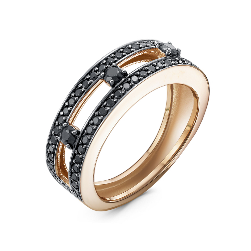 Стильное эффектное кольцо в форме "шайбы" выполнено в красном золоте 585 пробы, украшенное черными фианитами