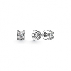 Нежные серьги-пусеты, выполнены из белого золота 585 пробы, украшены сияющими бриллиантами. Изящная крапановая закрепка придает камням объём и подчеркивает их природную красоту и игру света. Тип замка - винтовой, надежный и удобный. Изделие представлено брендом Алькор.