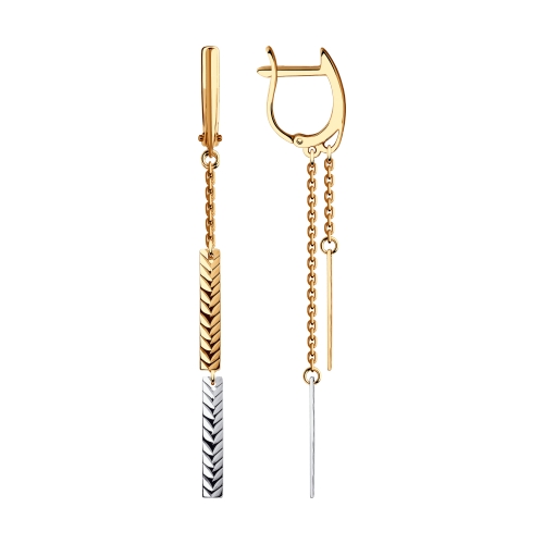 Серьги длинные из красного и белого золота 585 пробы с алмазной гранью, от бренда SOKOLOV