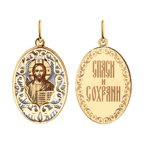 Подвеска-иконка из красного золота с изображением на эмали. На оборотной стороне надпись "спаси и сохрани". В комплект поставки входит: