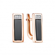 Стильные серьги выполнены в геометрическом дизайне из красного золота 585 пробы и украшены чёрными ониксами и дорожками из сверкающих фианитов