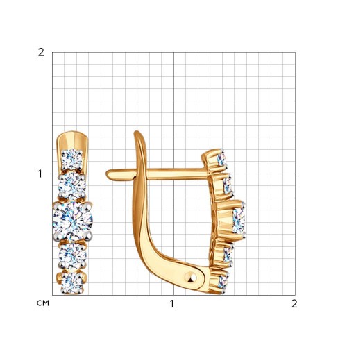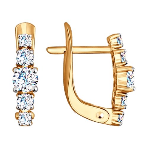 Серьги лаконичного дизайна выполнены в красном золоте 585 пробы и украшены блистающими фианитами. Это нестареющая классика, которая останется актуальной всегда и прекрасно дополнит любой образ.