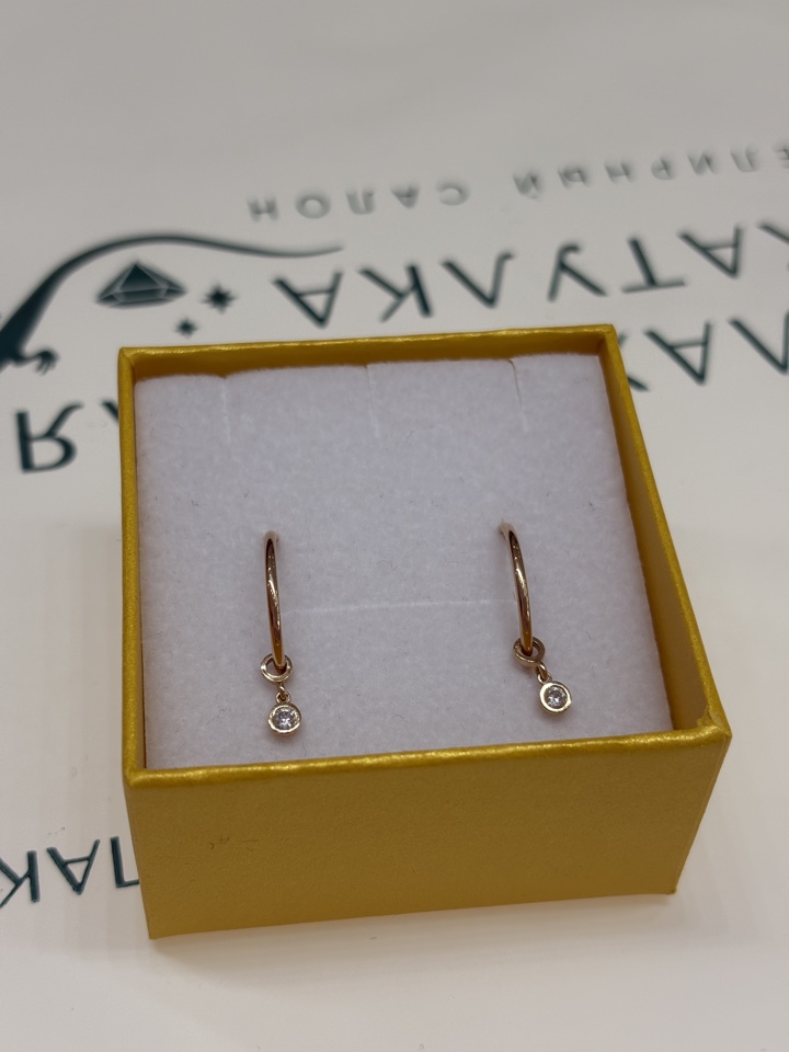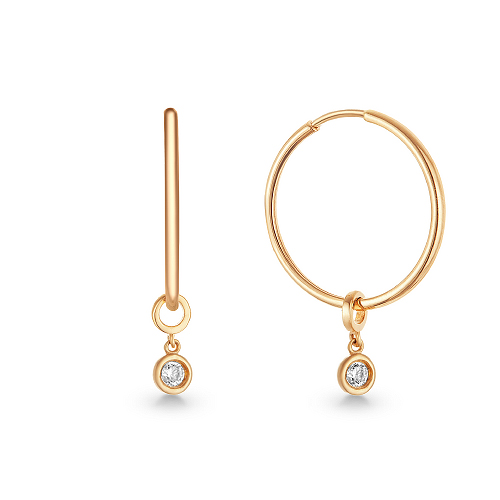 Серьги-кольца выполнены из красного золота 585 пробы, с вставкой из фианитов от бренда Veronika
