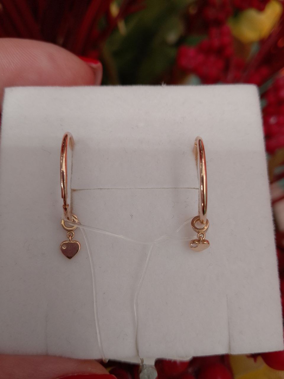 Оригинальные серьги из красного золота с подвесными сердечками! Очень удобные в носке,можно носить как трансформеры.Сочетаются с любым стилем !