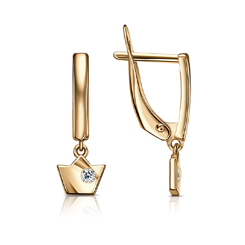 Нежные удлинённые серьги с подвесной частью в виде "короны" выполнены из красного золота 585 пробы, украшены сверкающими фианитами