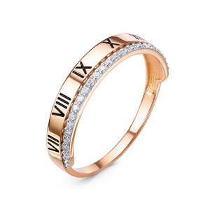 Стильное кольцо оригинального дизайна с изображением римских цифр, из коллекции Time of Tiffany, выполнено из красного и белого золота 585 пробы, украшено сияющими фианитами