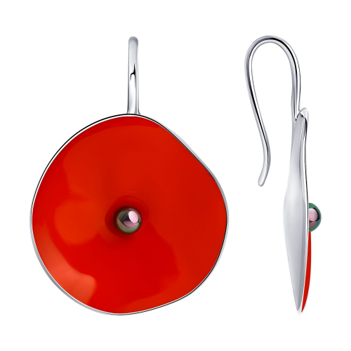 Оригинальные и стильные серьги в форме цветка мака из серебра 925 пробы от бренда SOKOLOV. Серьги покрыты ювелирной эмалью ярко красного цвета и украшены серой жемчужиной. В серьгах отражается стиль, уникальность форм и они станут ярким акцентом в вашем образе. Украшение покрыто родием - металлом платиновой группы, который делает серебро устойчивым к повреждениям и придает яркий искрящийся блеск. Вставка жемчуг (синт.) 2 шт, 0.82 карат В комплект поставки входит: