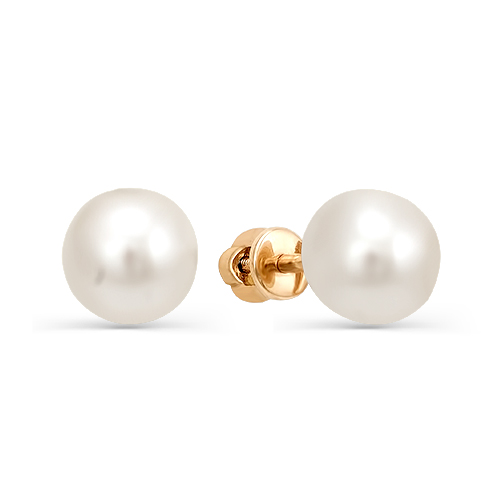 Серьги-пусеты классического дизайна с жемчугом, выполнены из красного золота 585 пробы