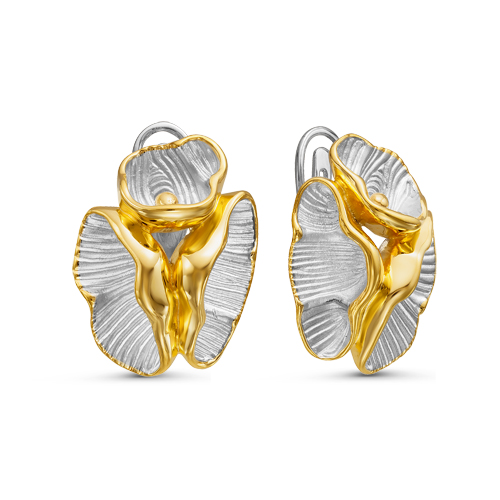 Оригинальные серьги, выполнены из серебра 925 пробы с родиевым покрытием, украшены золочением и покрытием белого цвета