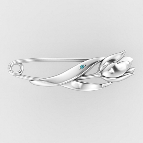 Романтичная брошь-булавка "Цветок любви" выполнена из серебра 925 пробы, украшена голубым фианитом