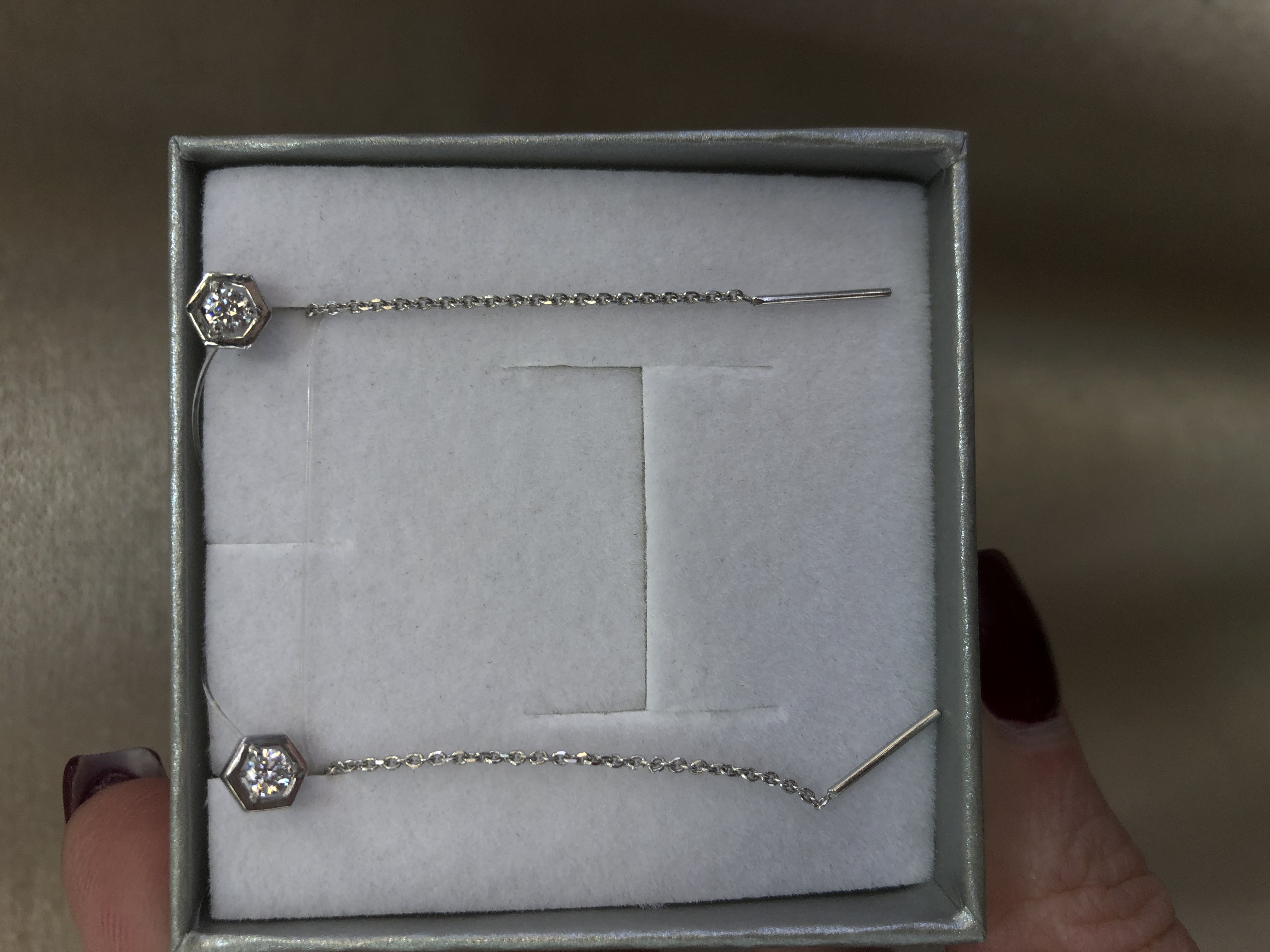 Нежные длинные серьги - цепочки выполнены из белого золота 585 пробы