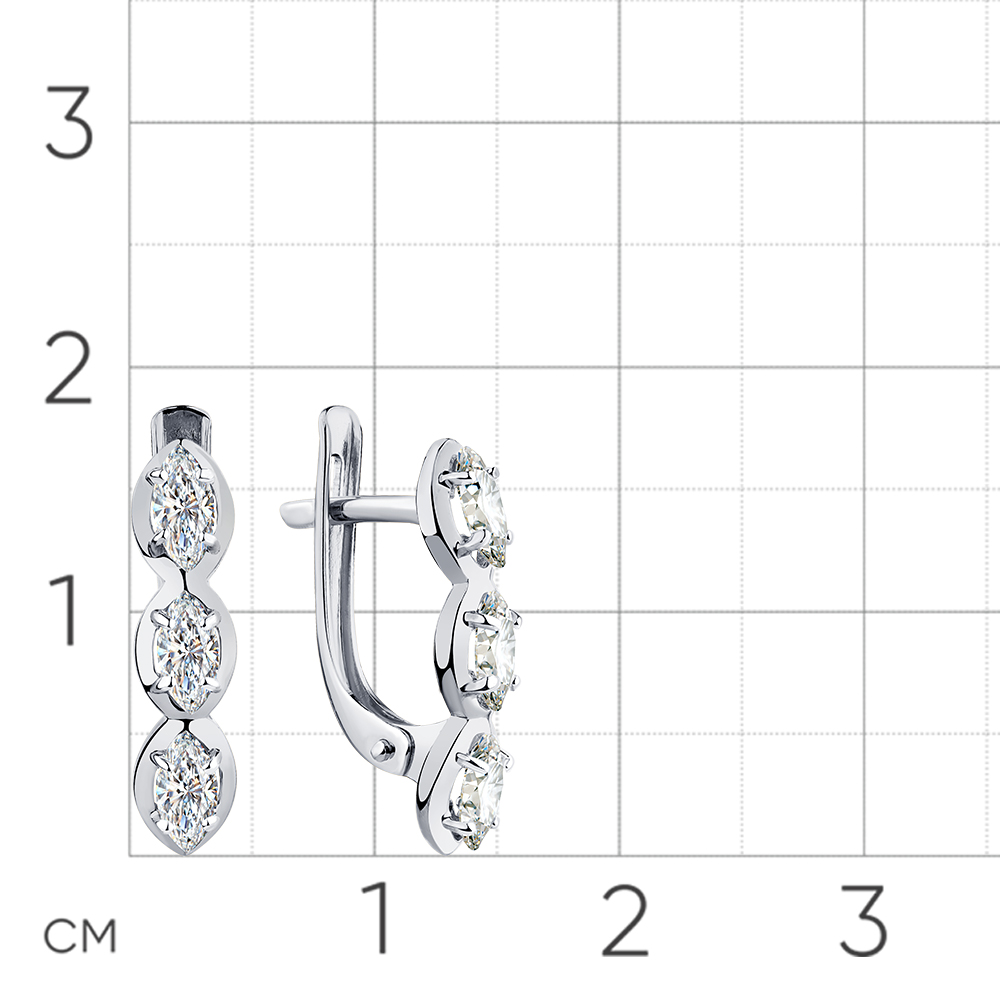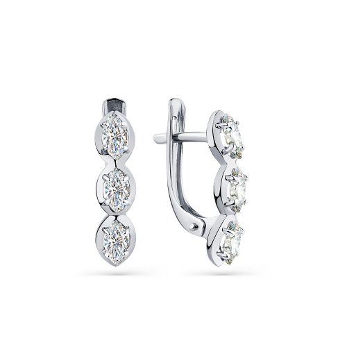 Нежные серьги выполнены из белого золота 585 пробы, украшены великолепными сияющими фианитами
