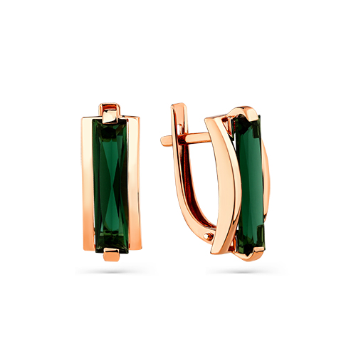 Яркие серьги, выполнены из красного золота 585 пробы, украшены синтетическим турмалином зелёного цвета