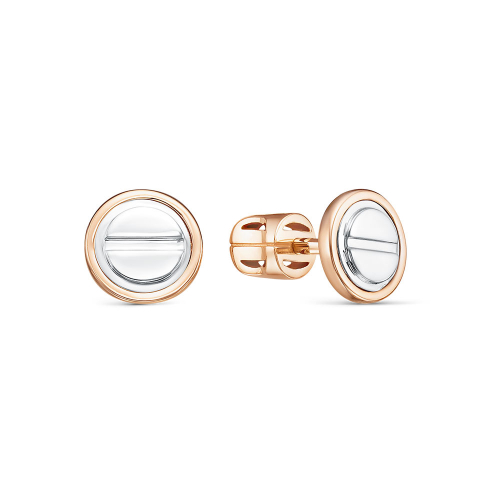 Стильные серьги - пусеты выполнены с сочетанием красного и белого золота 585 пробы