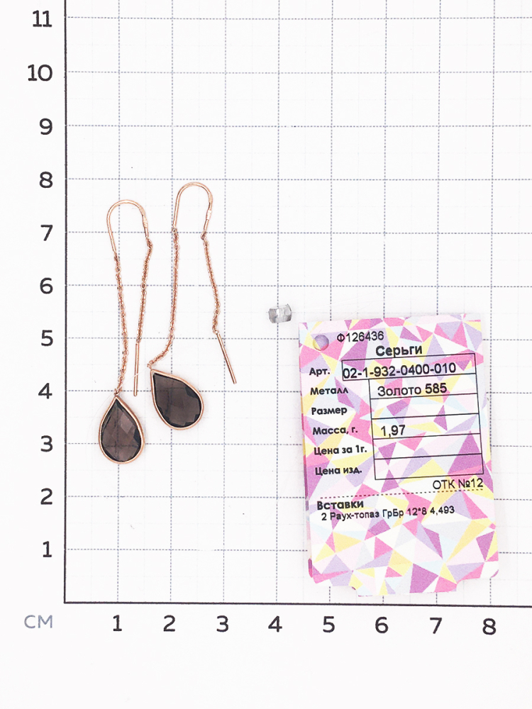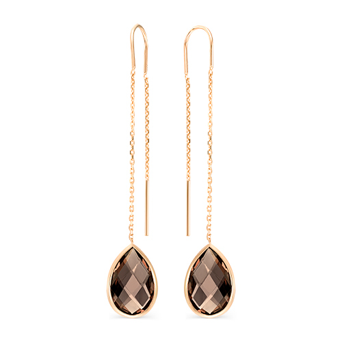 Стильные серьги - цепочки на основе "якорного" плетения выполнены в красном золоте 585 пробы. Каждую серьгу украшает раух-топаз в утонченной огранке "груша". Длинные серьги – украшение, способное любому образу придать элегантность и женственность. Изделие представлено брендом "MAGIC STONES". Средняя характеристика камней на артикул: 2 Раух-топаз. В комплект поставки входит: