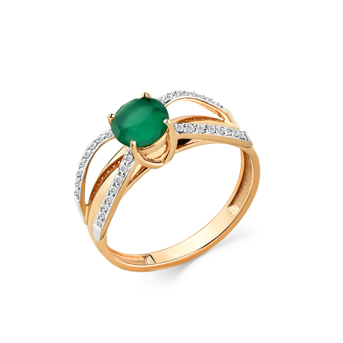 Элегантное нежное кольцо, выполнено из красного и белого золота 585 пробы, украшено ярким агатом в инкрустации сияющих фианитов