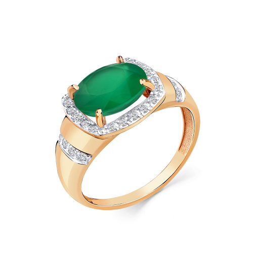 Элегантное нежное кольцо, выполнено в сочетании красного и белого золота 585 пробы, украшено ярким агатом в инкрустации сияющих фианитов