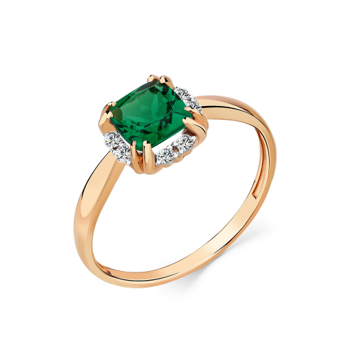 Роскошное кольцо, украшенное россыпью фианитов вокруг изумруда, выполнено в сочетании красного и белого золота 585 пробы