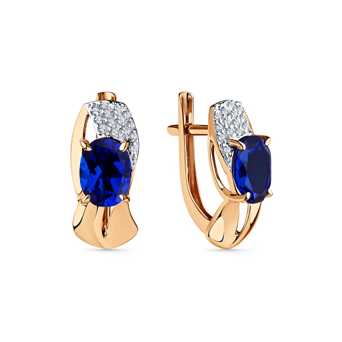 Элегантные серьги, украшенные сапфирами и фианитами, выполнены в сочетании красного и белого золота 585 пробы