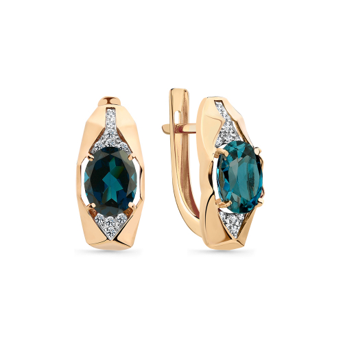 Серьги, красное золото, топаз лондон, проба 585