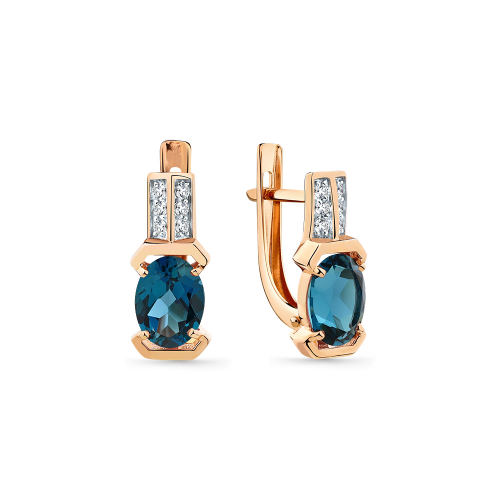Серьги, красное золото, топаз лондон, проба 585