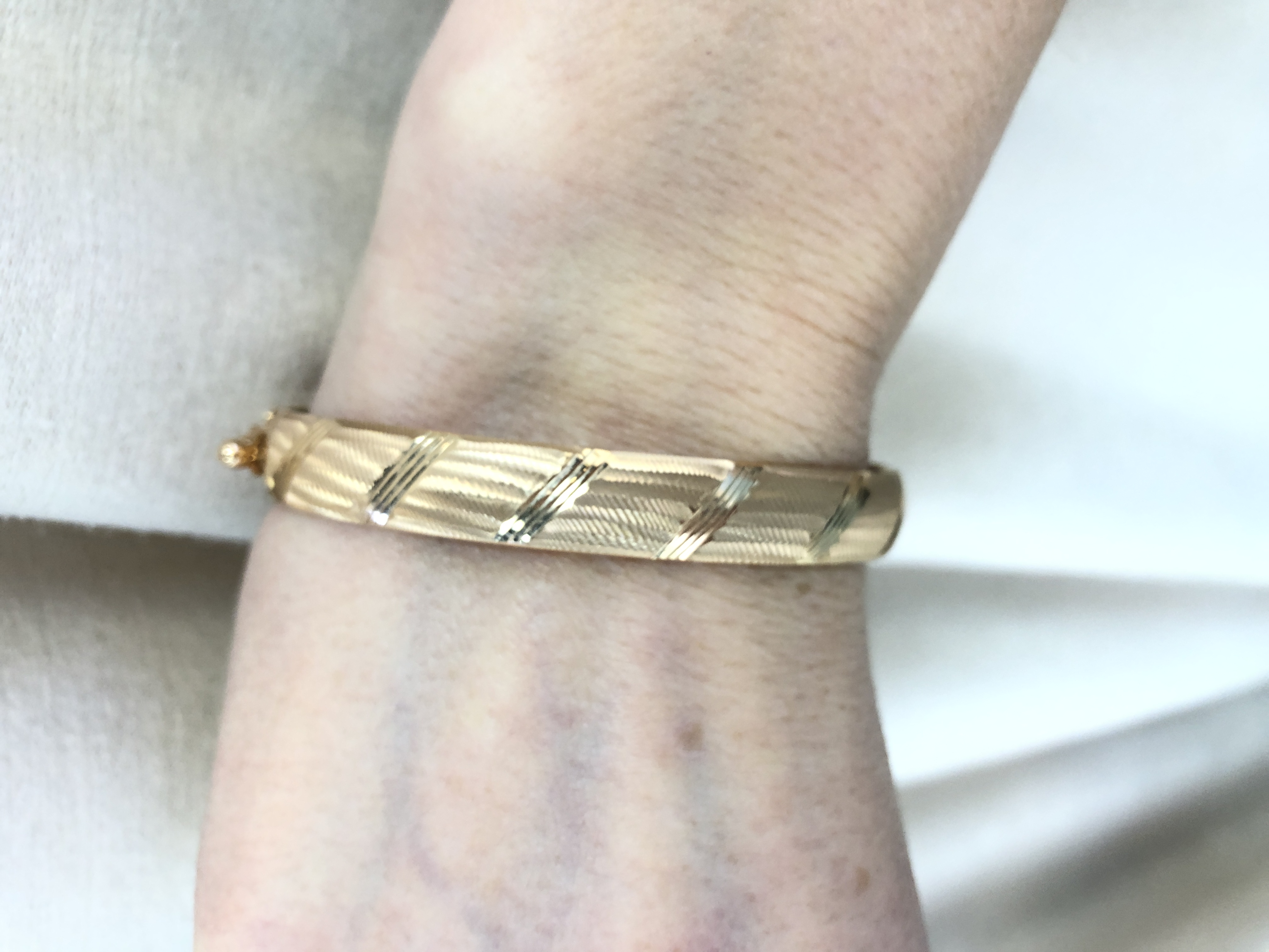 Симпатичный аккуратный браслет, благодаря насечками на золоте, блестит и переливается и оригинально смотрится.