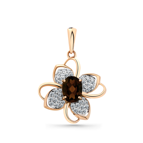 Нежная и романтичная подвеска, которая станет прекрасным дополнением к любому образу. Центр композиции занимает раух-топаз, его дымчато-коричневый оттенок придает подвеске глубину и загадочность. Камень, окруженный россыпью сверкающих фианитов, символизирует гармонию и красоту природы. Изделие представлено брендом MAGIC STONES. В комплект поставки входит:
