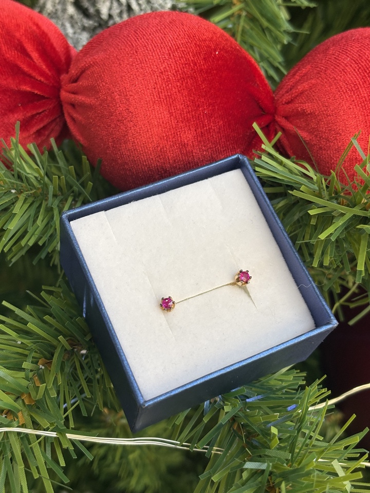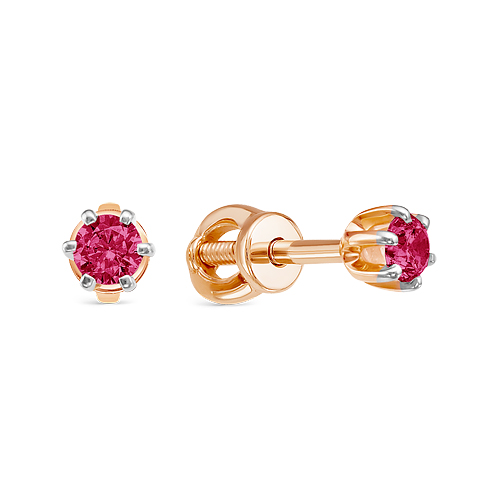 Cерьги-пусеты с роскошными рубинами, выполнены из красного и белого золота 585 пробы
