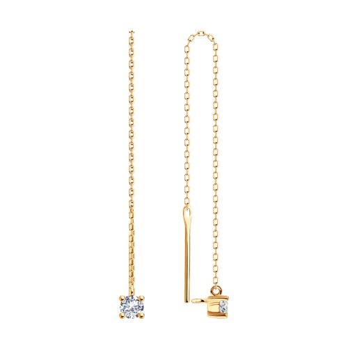 Изысканное и стильное украшение, которое подчеркнет вашу индивидуальность и добавит образу нотку роскоши. Протяжки – это особый вид серег, которые плавно удлиняются вниз, создавая эффект движения и легкости. Изделие сделано из красного золота 585 пробы, украшено сияющими фианитами. Изделие представлено брендом "SOKOLOV". В комплект поставки входит: