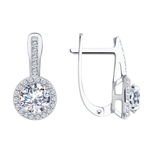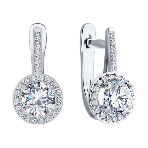 Элегантные серьги изготовлены из высококачественного белого золота 585-й пробы. Белое золото обладает мягким блеском, который прекрасно сочетается с любым образом, придавая ему изысканность и утонченность.Центральным элементом каждой сережки являются сверкающие фианиты, искусственные камни, обладающие высокой степенью прозрачности и яркостью. От бренда SOKOLOV. Вставки: 48 × Фианит В комплект поставки входит: