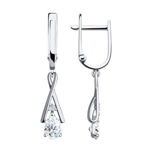 Элегантные удлинённые серьги изготовлены из высококачественного белого золота 585-й пробы, украшенные сверкающими фианитами. Белый цвет золота придаёт украшению изысканный и современный вид, гармонично сочетаясь с любыми нарядами. Удлинённая форма серёг добавляет образу лёгкости и воздушности, визуально удлиняя шею и подчёркивая черты лица. Благодаря этому они становятся заметным акцентом в любом образе, привлекающим внимание. Изделие представлено ювелирной компанией SOKOLOV. Вставки: 4 х Фианит В комплект поставки входит: