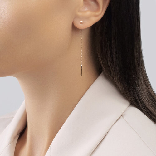 Элегантные серьги-продевки изготовлены из качественного красного золота высшей 585-й пробы, что гарантирует их долговечность и прочность