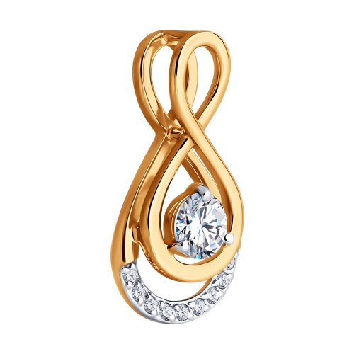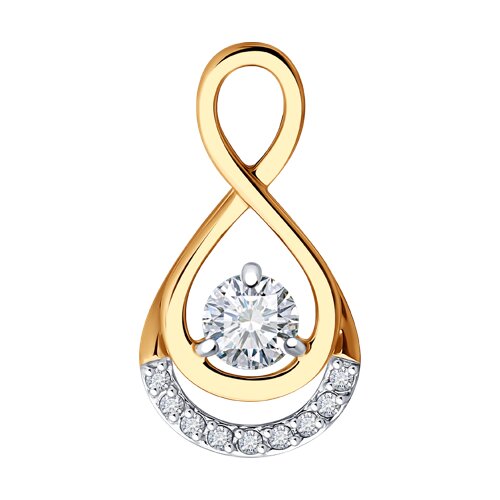 Эксклюзивная подвеска изготовлена в сочетании красного и белого золота 585-й пробы, что гарантирует её высокое качество и долговечность. Необычный дизайн подвески привлекает внимание и выделяет её среди дургих украшений. Изделие представлено брендом SOKOLOV. Вставки: 9 × Фианит недраг Бесцветный Круг 1.00 ~0,090 кар