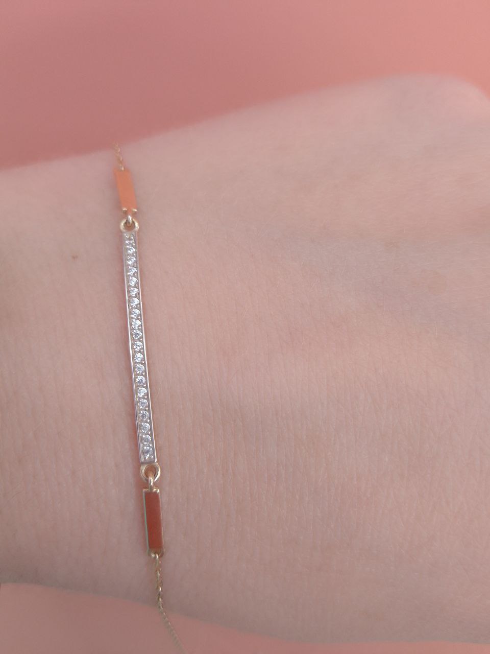 Элегантный браслет из красного золота 585 пробы, украшенный сияющими фианитами