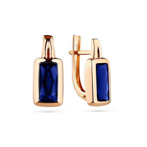 Стильные лаконичные серьги скорундовым сапфиром огранки багет, выполнены из красного золота 585 пробы