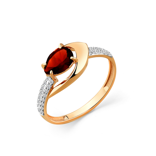 Кольцо с гранатом выполнено с сочетанием красного и белого золота 585 пробы